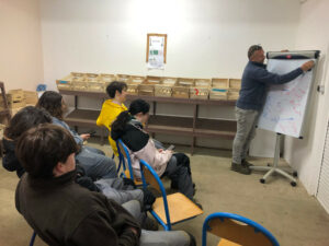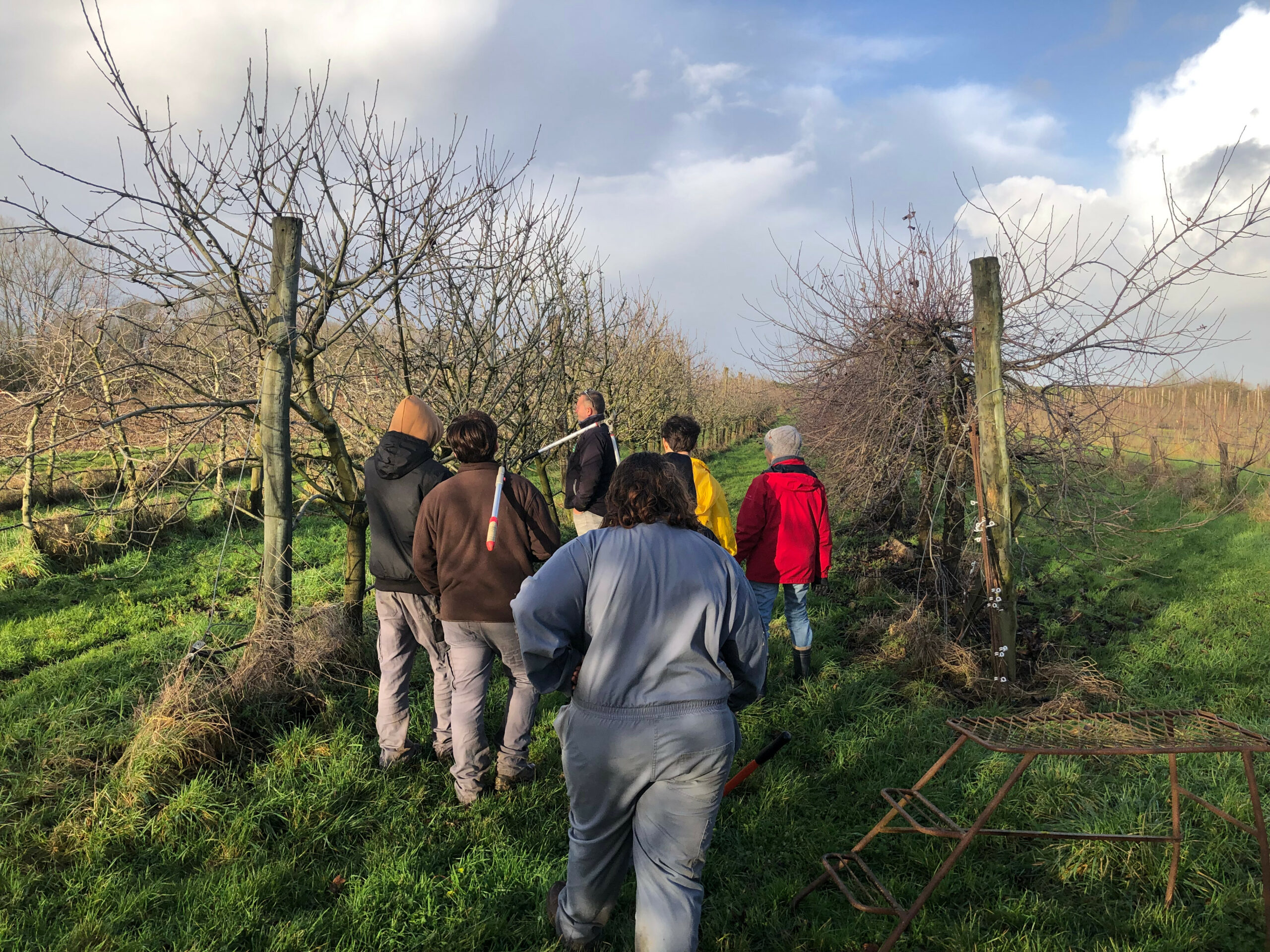 Malgré une météo peu favorable, les cinq élèves présents se sont montrés motivés, attentifs et impliqués tout au long de la journée. Accompagnés par Benoît Piron, technicien du verger, ils ont bénéficié de conseils techniques précieux sur la taille des arbres fruitiers, adaptés aux spécificités du verger conservatoire.